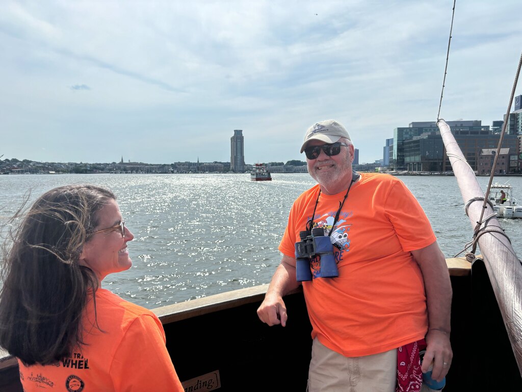 Awaiting her arrival in a shirt that read “Katie Pumphrey’s Bay to Baltimore,” Jack knows many have grown up with a stigma around the harbor. ”No pun intended, but the tide is turning,” he said. “We all need to be a part of it.”