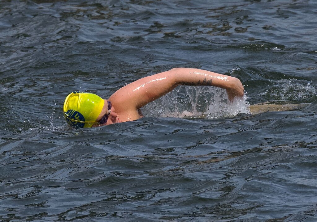 “It’s getting fresher,” Sarah Eikrem, a support swimmer, joked.