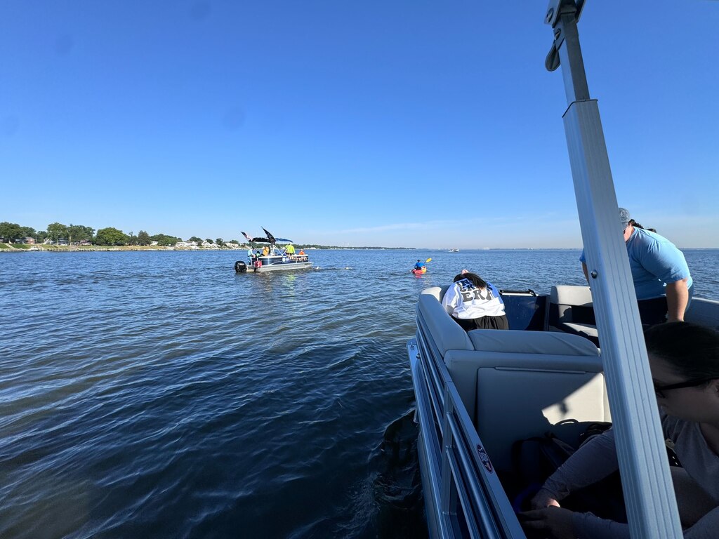 The primary boat had her husband, the crew chief; Caroline Block, an open water swimmer who would observe the swim for data logging and to make sure she follows the rules; her brothers Chris and Sean, who would alternate kayaking alongside her; her niece Nayev; and her friends Meaghan Carpenter and Eikrem, who would be her support swimmers.