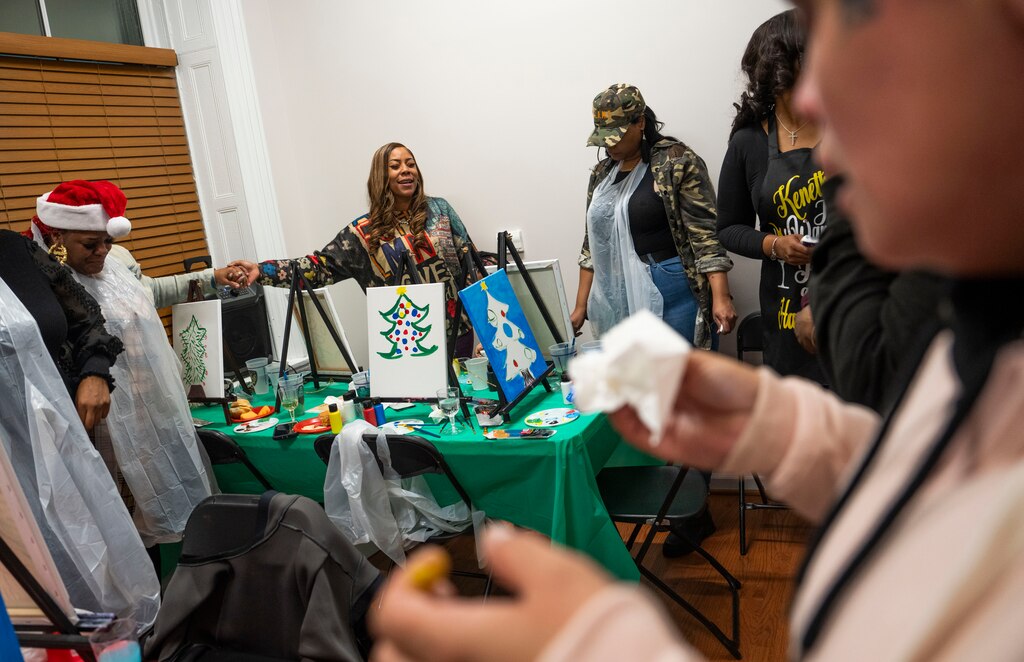 “You don’t have to mask here,” said Angela Royster Rodgers, organizer of the sip-and-paint night.