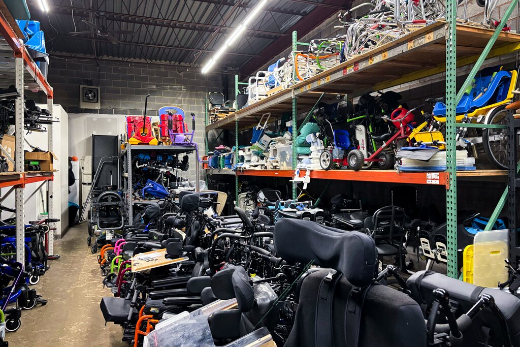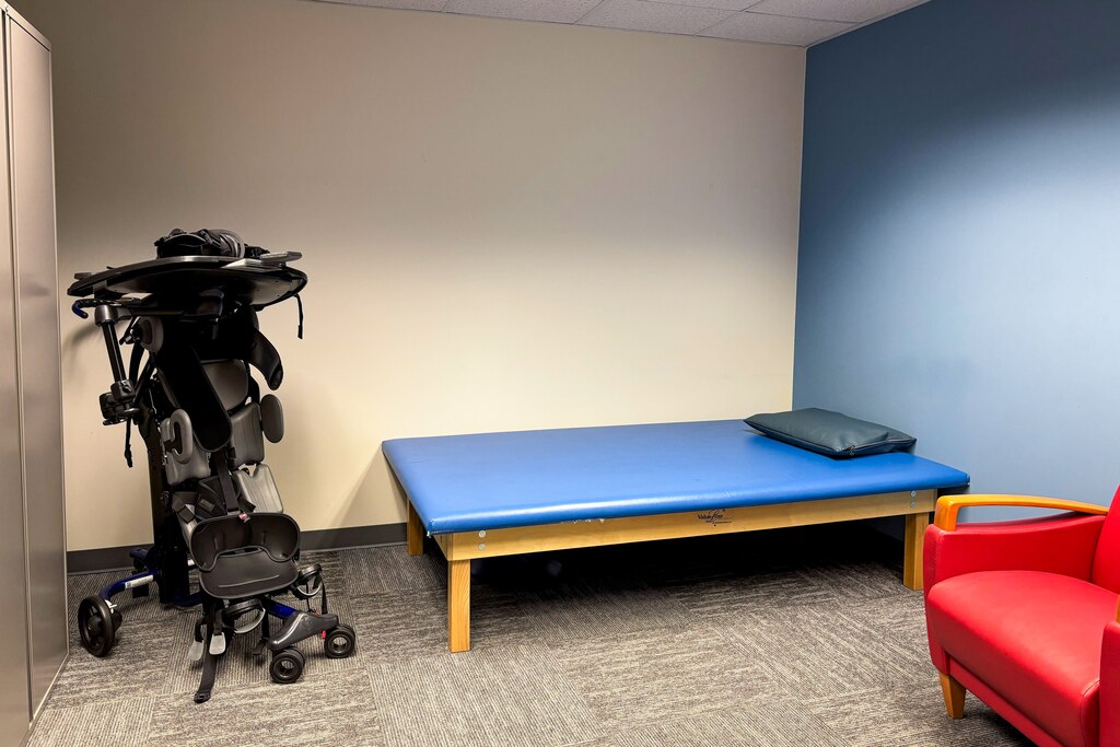 It sits in a one-story office park and was designed to accommodate disabled clients. In one room, an examination table is wider and lower to the ground than most for easier patient access. In another, hundreds of wheelchairs in various sizes are packed together for patients to borrow.