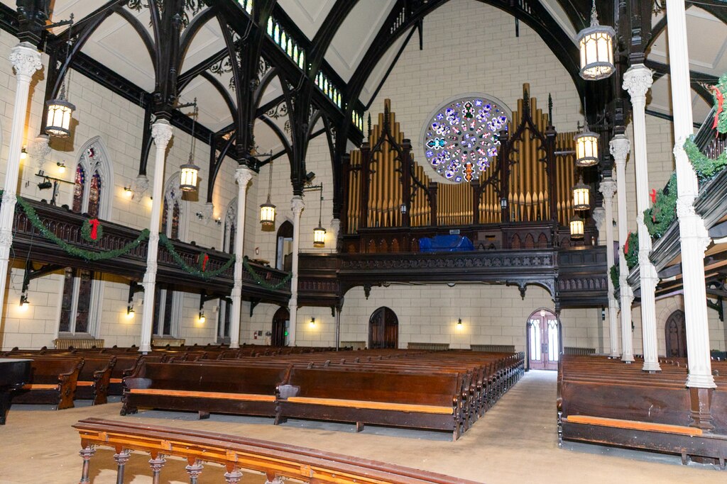 The church’s proximity to the Peabody Institute and Baltimore School for the Arts could make it a great performance space for local institutions, Hopkins said. The building contains a full auditorium, chapel and sanctuary that the property brokers estimate holds 900 people, though some of the hand-carved pews have been removed.