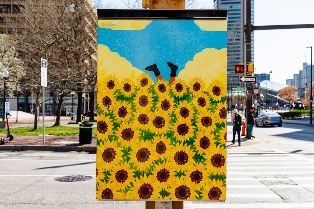 Scott recently announced the competition’s winners: 10 different artists or collectives. The winning participants used colorful imagery to highlight the city, including a bright sunflower field, a depiction of a Baltimorean meal with foods like a crab cake, oysters and an orange crush, as well as a collage of all things that symbolize the city that includes the Domino Sugars sign and an oriole bird.