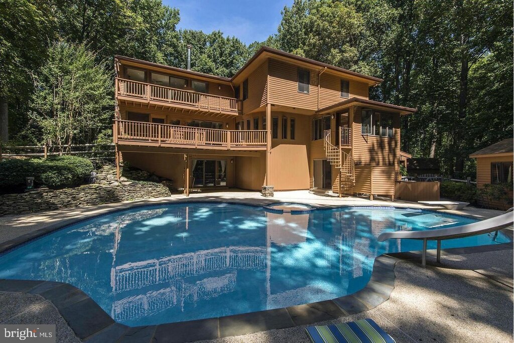 Situated on just over 3 wooded acres, this Laurel home offers an escape into nature with spacious, attractive interiors. Enjoy modern living spaces, including a gourmet kitchen, all with beautiful views of the outdoors. A lush backyard with multitier decks and a saltwater pool complete this distinctive home.