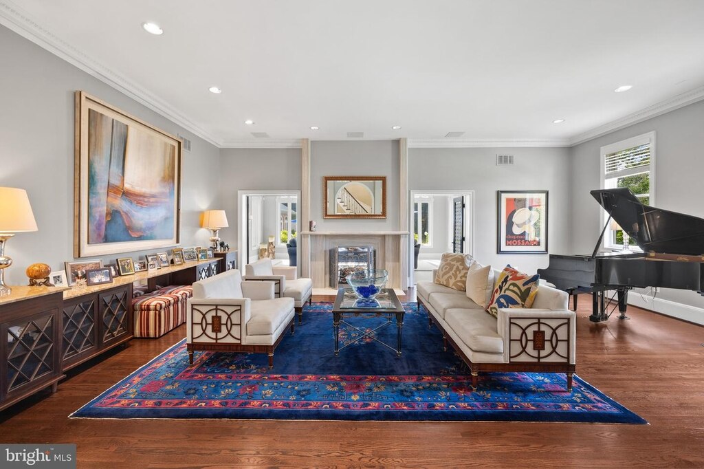 You’ll love the eat-in kitchen, with top-of-the-line appliances, a large island and a pantry. The main level also features a wood-paneled office with built-ins and a bright living room with another fireplace.