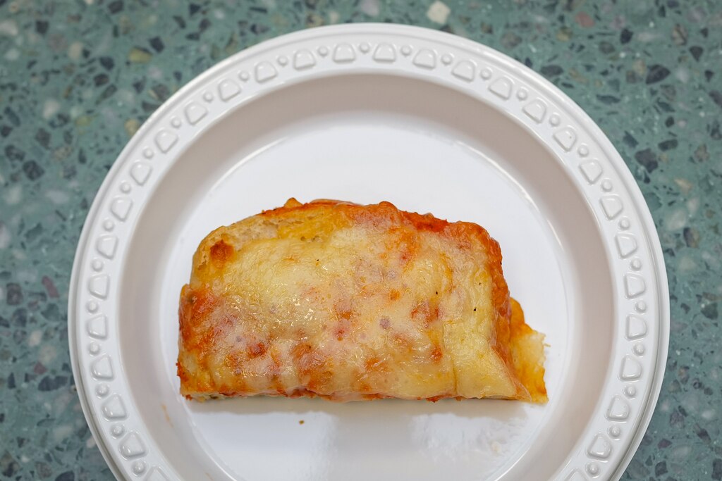 Pizza that’s just OK is still pretty good, and the French bread pizza from Mickey’s Brands falls under this category. The bread would be tastier, in my opinion, if it were white instead of whole grain, which has a mushier texture and that telltale bran-like flavor, but you can’t fault the schools for following federal guidelines.