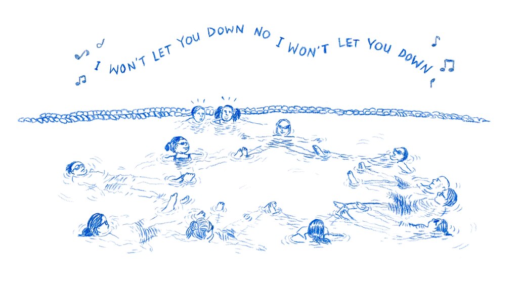 At one point the lifeguards ask patrons to clear out the deep end. Like a fever dream, an OKGo song blasts over the speakers and colorful swimmers—some in sparkly leggings—dive into the pool, practicing a synchronized dance.